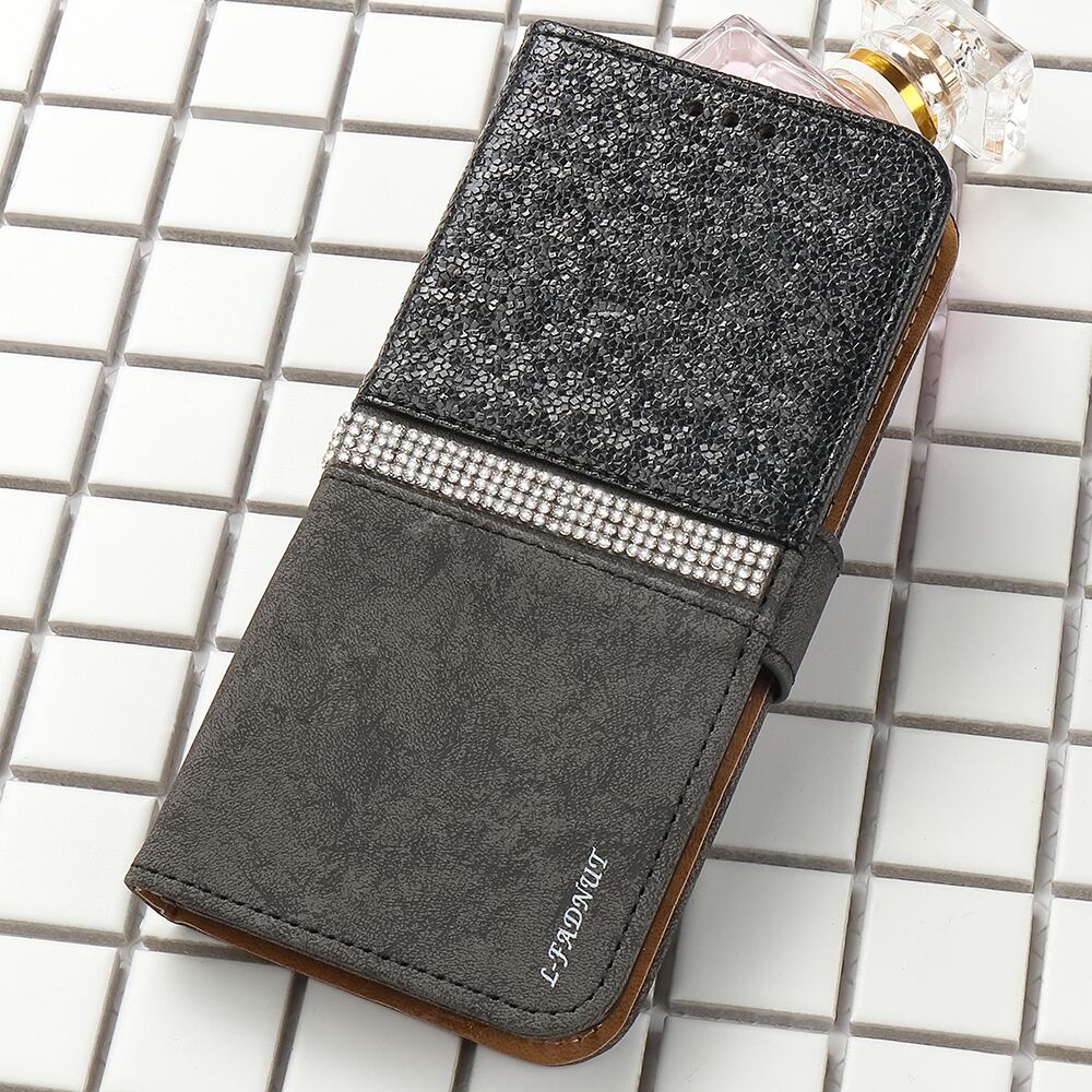 ★送料無料★ 3色 グレー 灰色 iPhone11対応 キラキラ ラインストーン フラップ 手帳型 ケース iPhoneケース スマホケース おしゃれ 最新