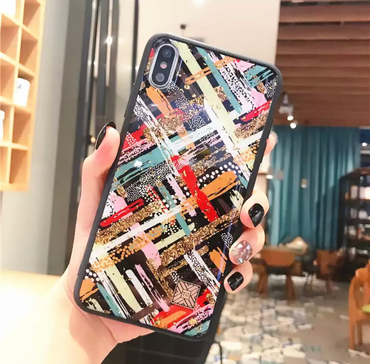 ★送料無料★ 17柄 iPhone11対応 大理石 マーブル ペイント 落書き ガラス iPhoneケース スマホケース おしゃれ 最新