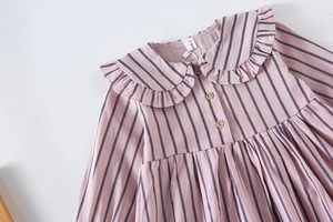 ★送料無料★ 女の子 ストライプ ワンピース フリル ドレス キッズ 子供 ベビー 長袖 春 夏