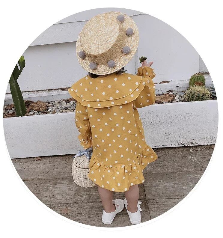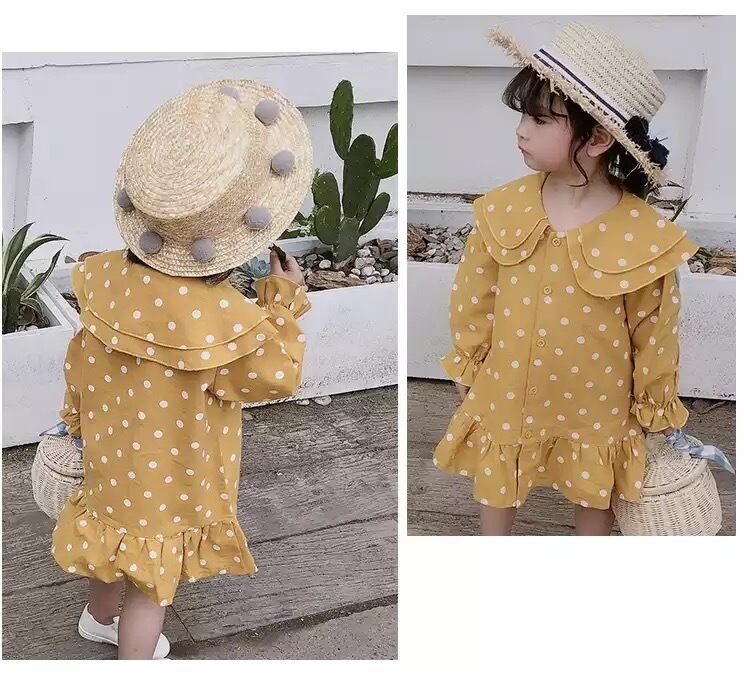 ★送料無料★ 2色 レッド系 女の子 ドット 水玉 襟付き ワンピース フリル ドレス キッズ 子供 ベビー 長袖 春 夏