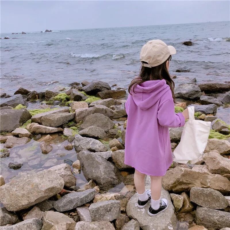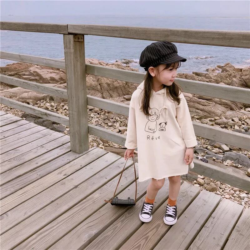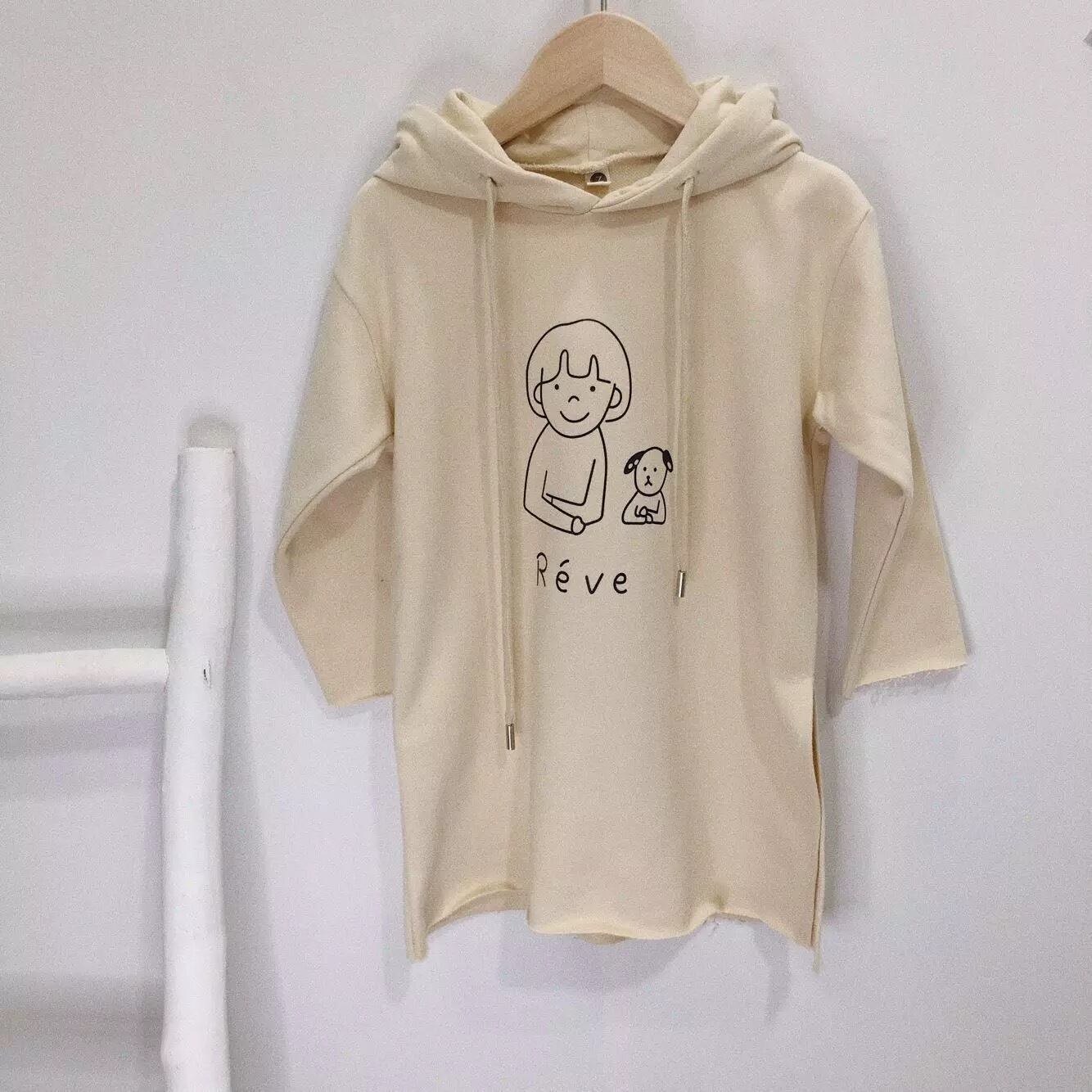★送料無料★ 2色 ベージュ パーカー ワンピース スエット スウェット キッズ 子供 ベビー 長袖 フード付き 春 夏