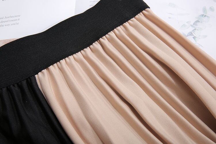 ★送料無料★ レディース 3色 ベージュ コントラスト プリーツ ハイウエスト スカート ロングスカート スカート Aライン
