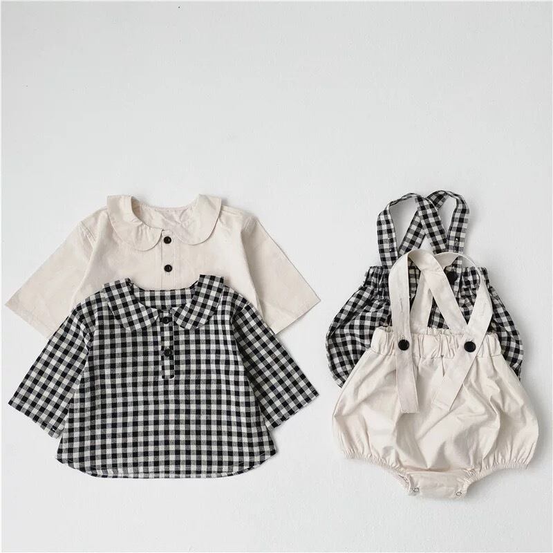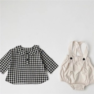 ★送料無料★ 女の子 2種類 チェック ブラウス オーバーオール サロペット セット セットアップ かぼちゃパンツ 赤ちゃん ベビー 子供 キッズ 春 夏