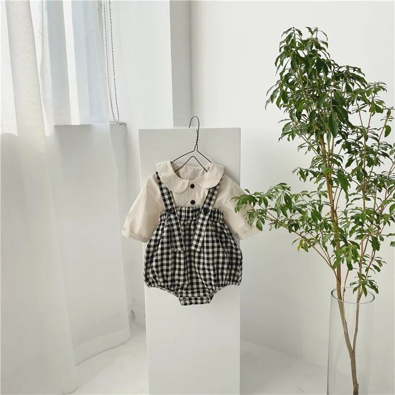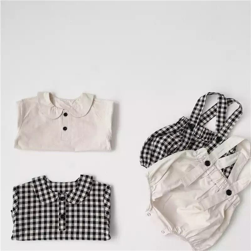 ★送料無料★ 女の子 2種類 チェック ブラウス オーバーオール サロペット セット セットアップ かぼちゃパンツ 赤ちゃん ベビー 子供 キッズ 春 夏