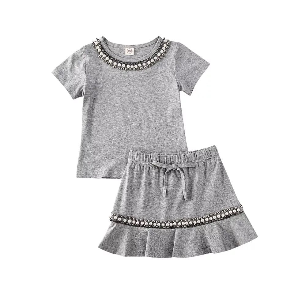 ★送料無料★ 女の子 パール風 真珠風 Tシャツ スカート セット スタッズ 子供 ベビー キッズ 春 夏