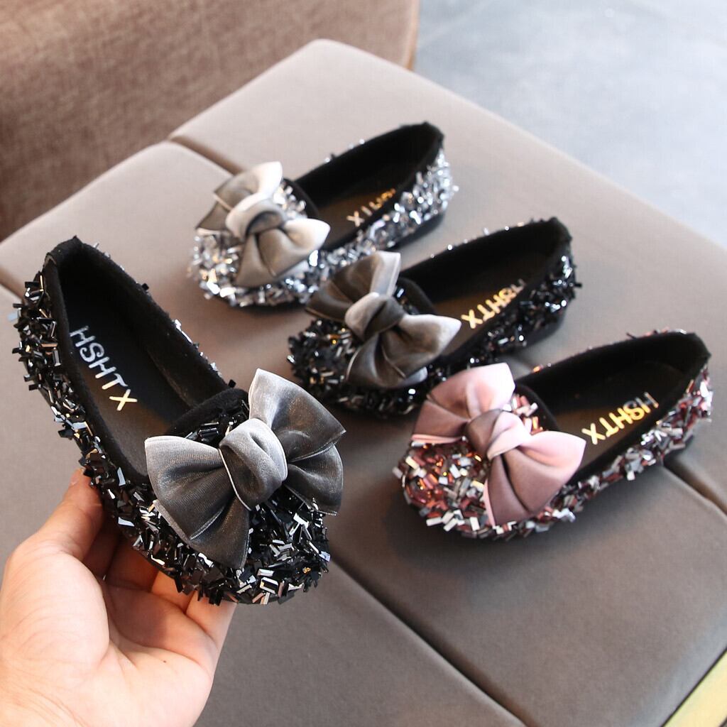 ★送料無料★ 3色 シルバー 銀 女の子 ビジュー キラキラ リボン パンプス 子供 キッズ ベビー ヒール おしゃれ 春 夏 秋 冬