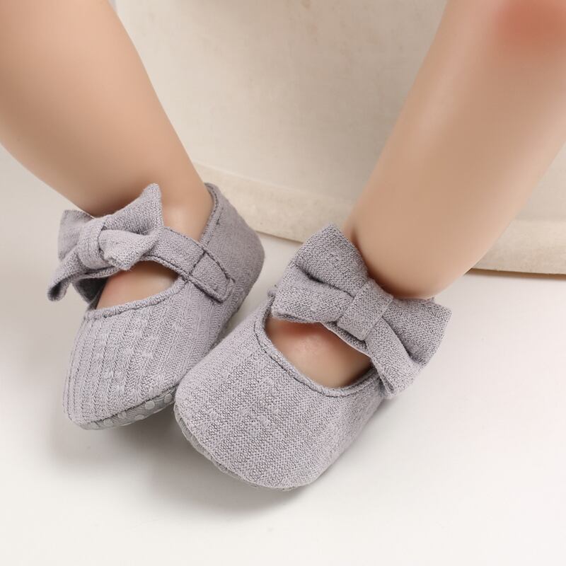 ★送料無料★ 4色 グレー 灰色 ファーストシューズ ベビーシューズ 靴 キッズ ベビー 子供 赤ちゃん リボン 新生児 春 夏