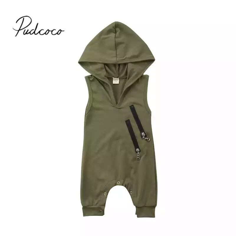 ★送料無料★ 男の子 ノースリーブ ジップ フード付き ロンパース ワイルド キッズ 子供 ベビー 赤ちゃん 春 夏