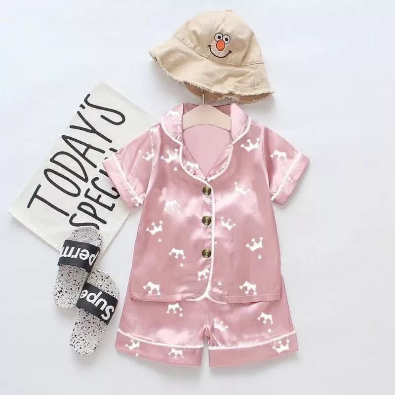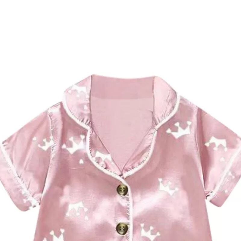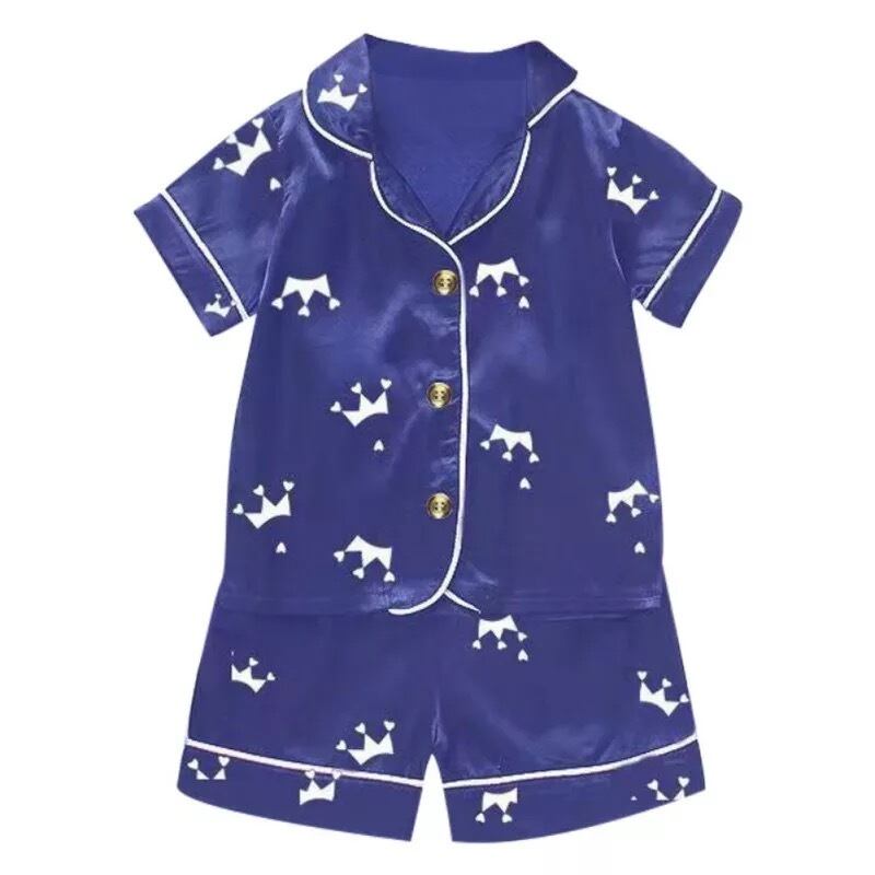 ★送料無料★ 2色 ブルー 青 男の子 女の子 パジャマ 半袖 半ズボン クラウン 王冠 寝間着 ナイトウェア 子供 ベビー キッズ 春 夏