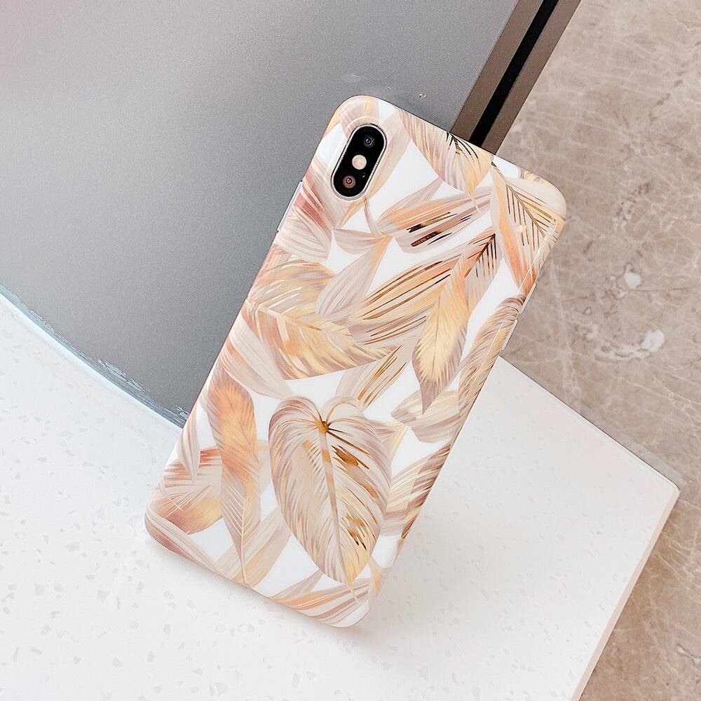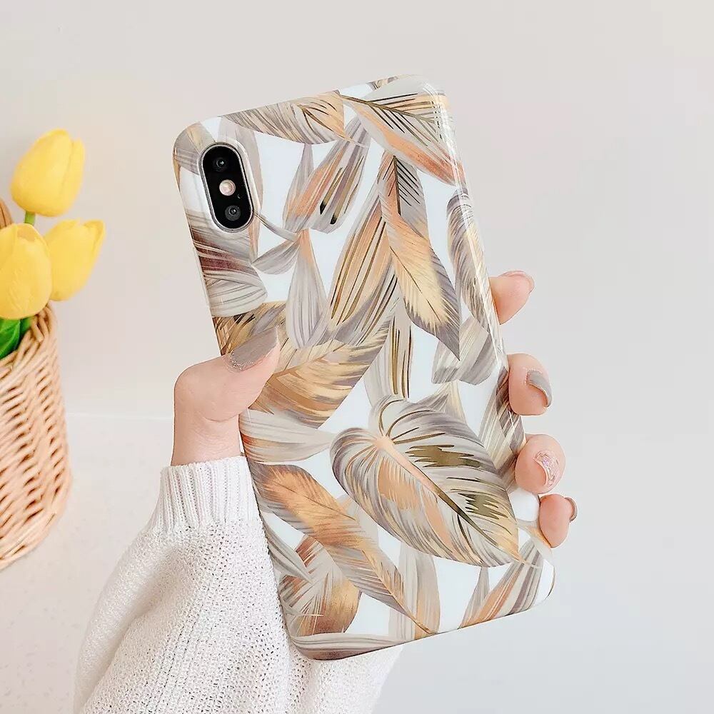 ★送料無料★ iPhone ケース フェザー 葉 ゴールドミラー スマホケース おしゃれ 最新