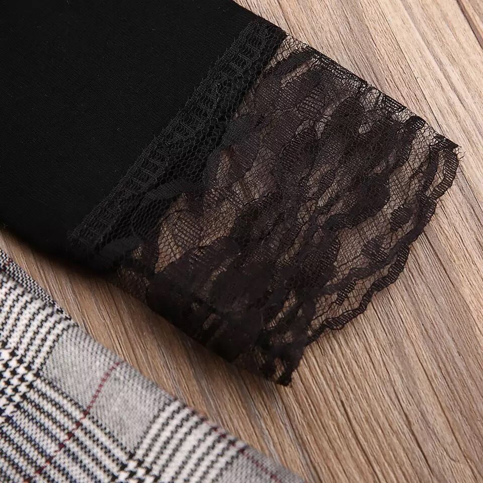 かわいい女の子のチェックスカートとレースブラウスのセット?
