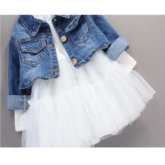★送料無料★ 2カラー グレー 灰色 女の子 チュール ワンピース デニムジャケット セット ジージャン Gジャン 子供 キッズ ベビー 春 夏