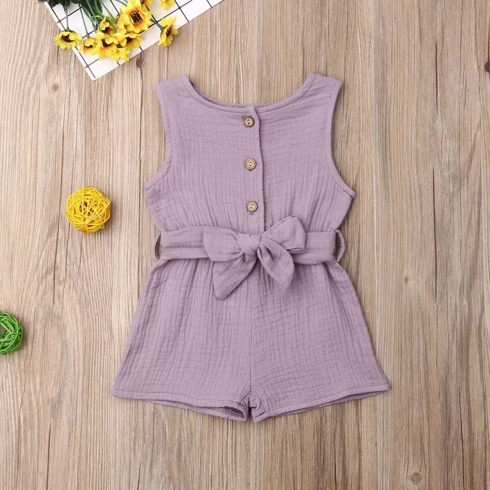 ★送料無料★ 3色 グリーン 緑 女の子 オールインワン サロペット ジャンプスーツ ウエストマーク リボン 優しい生地 子供 キッズ ベビー 春 夏