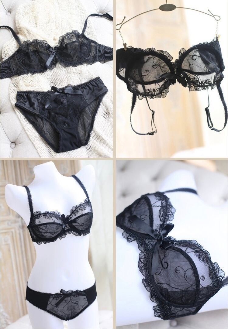 ★送料無料★ 5カラー ブルー 青 レディース 刺繍 レース リボン ランジェリー パンツ ブラジャー セット ショーツ 女性用
