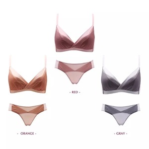 ★送料無料★ 3色 オレンジ レディース ランジェリー パンツ ブラジャー セット ショーツ 女性用 ワイヤレス