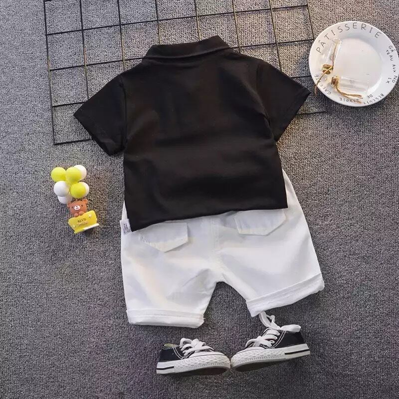 ★送料無料★ 男の子 シンプル 半袖 ポロシャツ ハーフパンツ セット キッズ 子供 ジュニア 春 夏 襟付き Tシャツ モノトーン