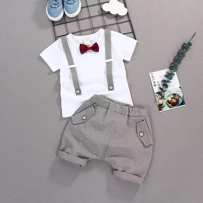かわいい蝶ネクタイとサスペンダーのTシャツとショートパンツのセット?