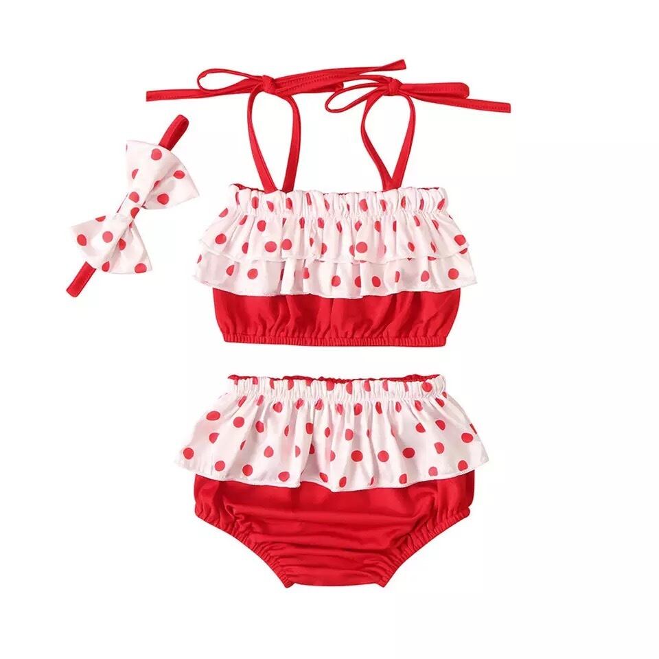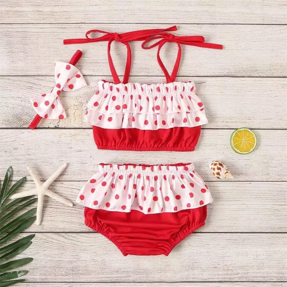 ★送料無料★ 女の子 水着 水玉 ドット フリル ヘアバンド付き スイムウェア ガール 女の子 赤ちゃん ベビー キッズ