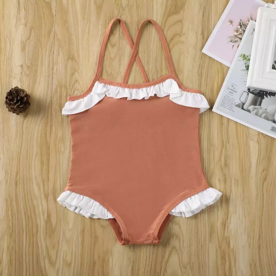 ★送料無料★ 3カラー オレンジ 女の子 水着 フリル シンプル スイムウェア ガール 女の子 赤ちゃん ベビー キッズ