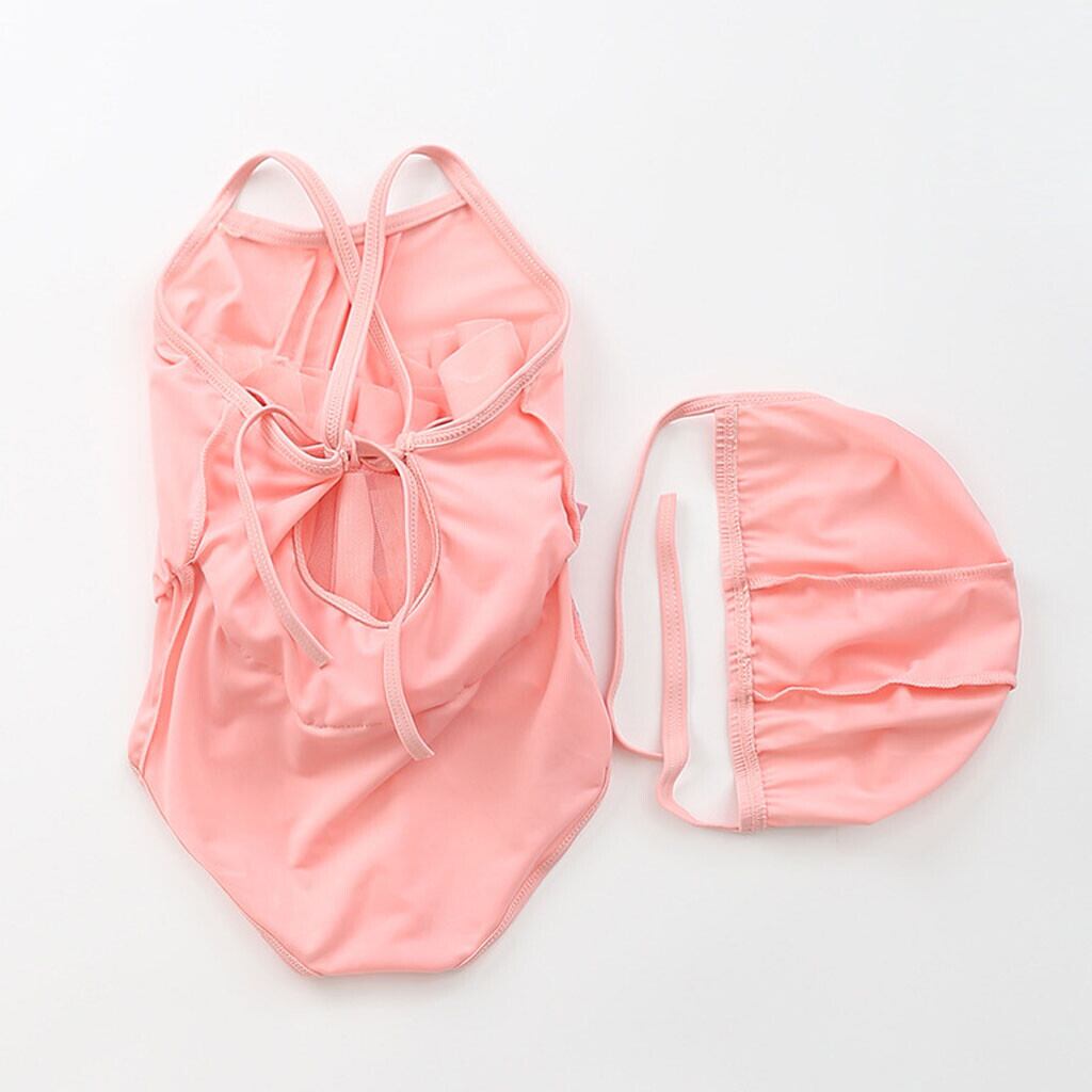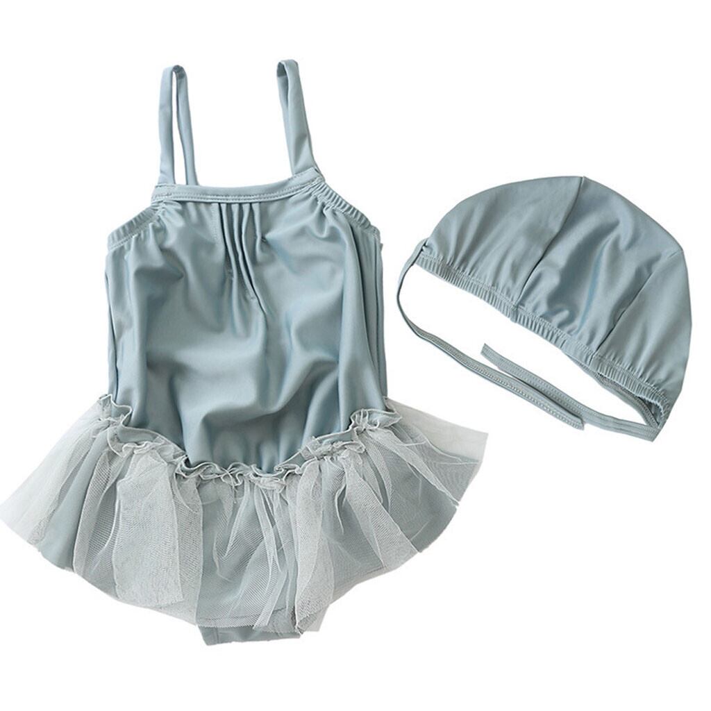 ★送料無料★ ミントグリーン 女の子 水着 フリル チュール 水泳キャップ 帽子付き スイムウェア ガール 女の子 赤ちゃん ベビー キッズ