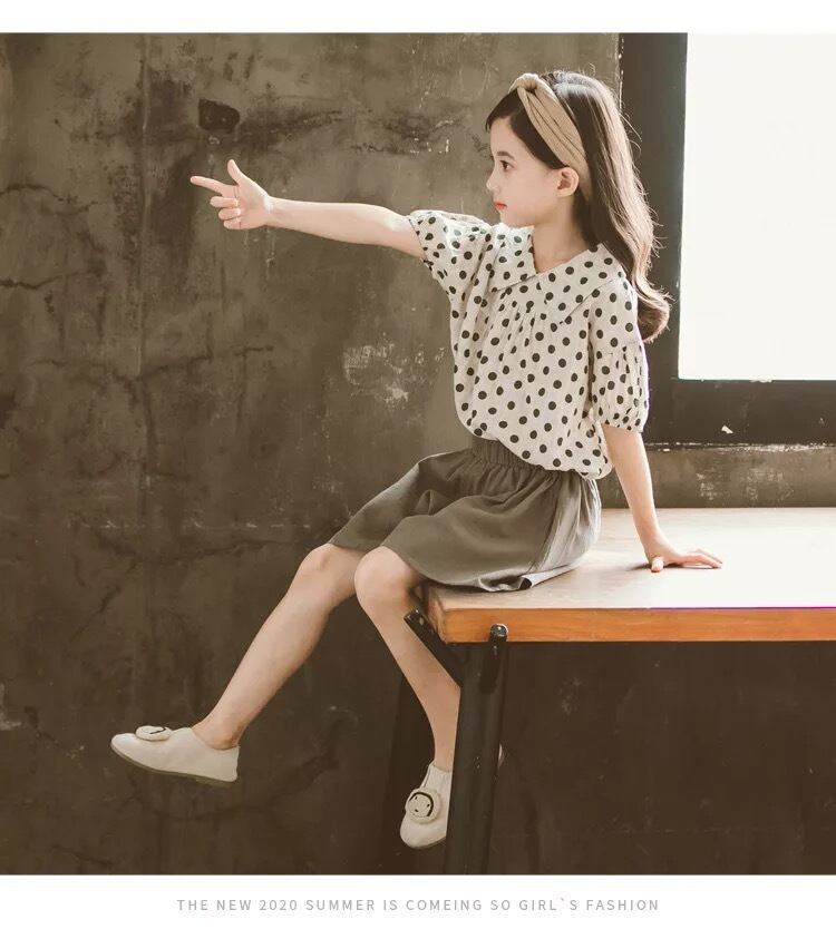★送料無料★ 2カラー レッド系 赤系 ジュニア 女の子 キュロット ブラウス セット 水玉 ドット 子供 キッズ 春 夏