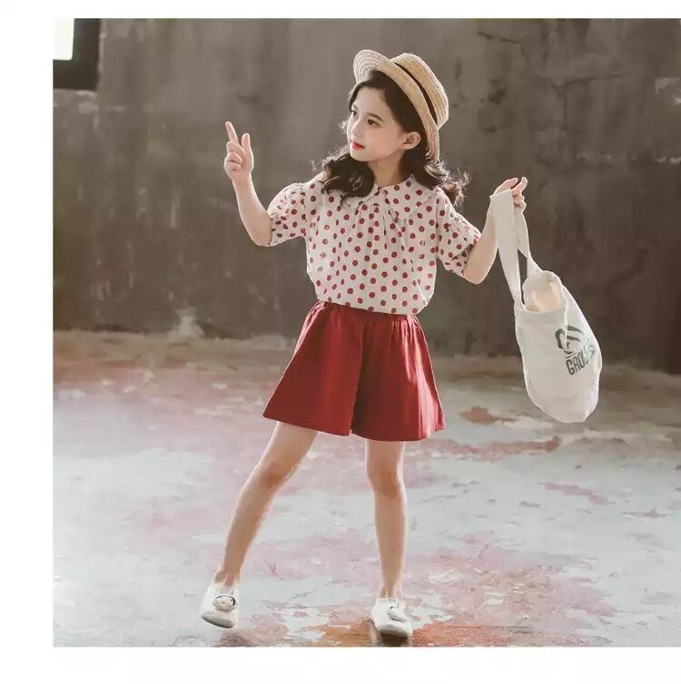 かわいいキュロットと水玉ブラウスのセット?