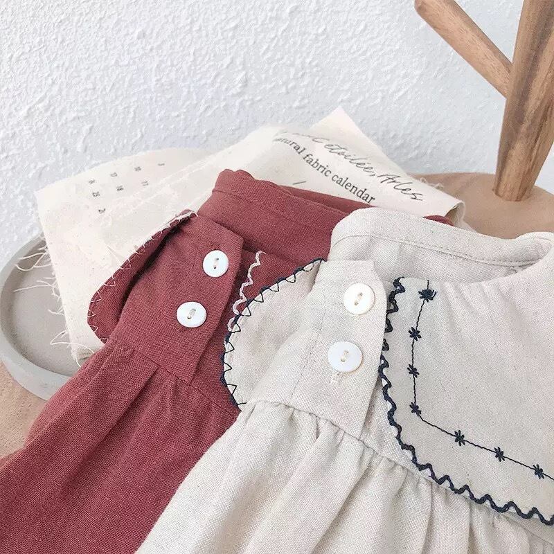 ★送料無料★ 3カラー レッド 赤 リネン ワンピース 子供 キッズ ベビー 春 夏