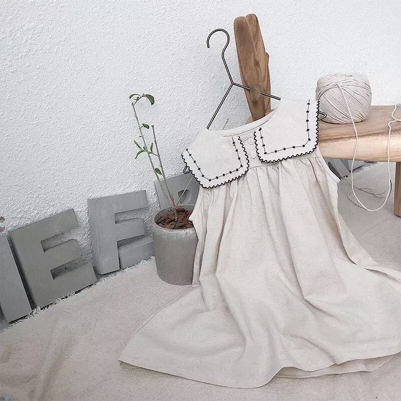 ★送料無料★ 3カラー ブルー 青 紺 リネン ワンピース 子供 キッズ ベビー 春 夏