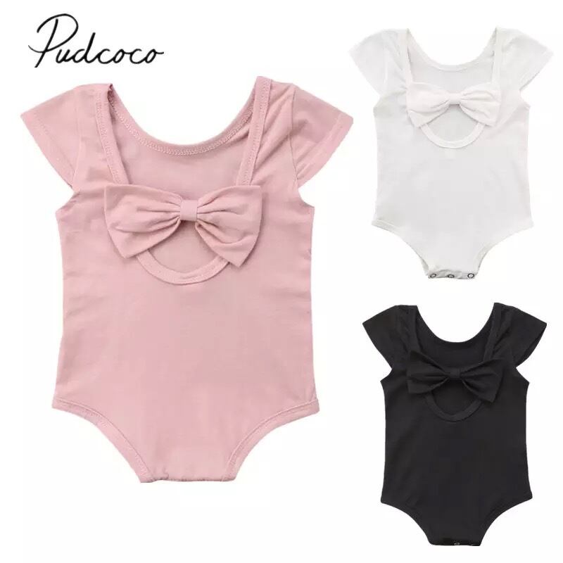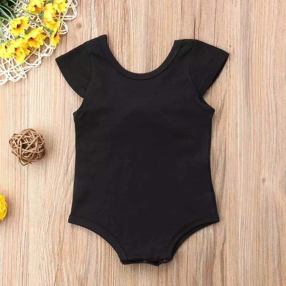 ★送料無料★ 3カラー ブラック 黒 女の子 リボン 半袖 シンプル ロンパース キッズ 赤ちゃん ベビー 春 夏
