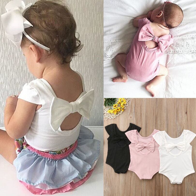 ★送料無料★ 3カラー ピンク 女の子 リボン 半袖 シンプル ロンパース キッズ 赤ちゃん ベビー 春 夏