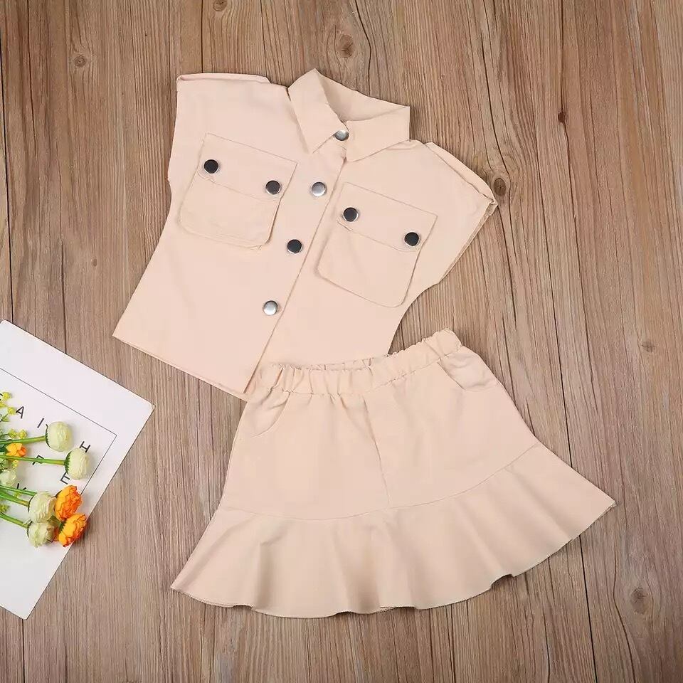 ★送料無料★ 女の子 ノースリーブ サファリシャツ スカート セット キッズ ベビー 赤ちゃん 春 夏