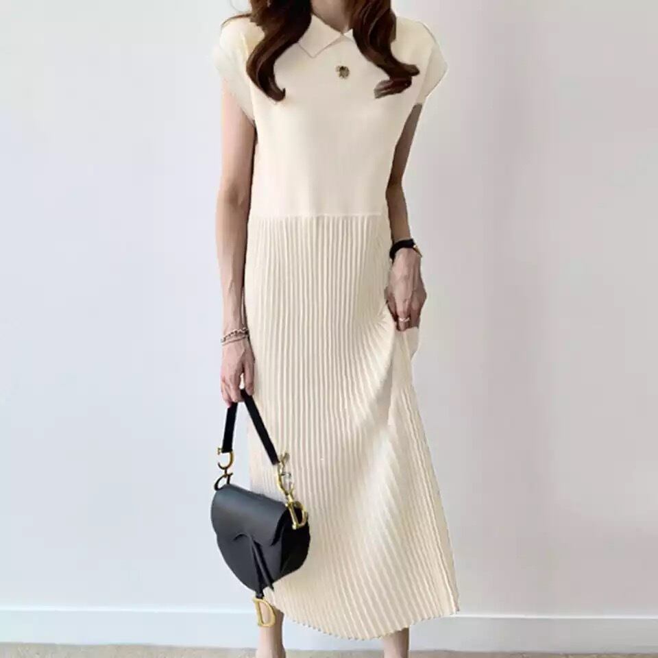 おしゃれでエレガントな襟付きプリーツワンピース?
