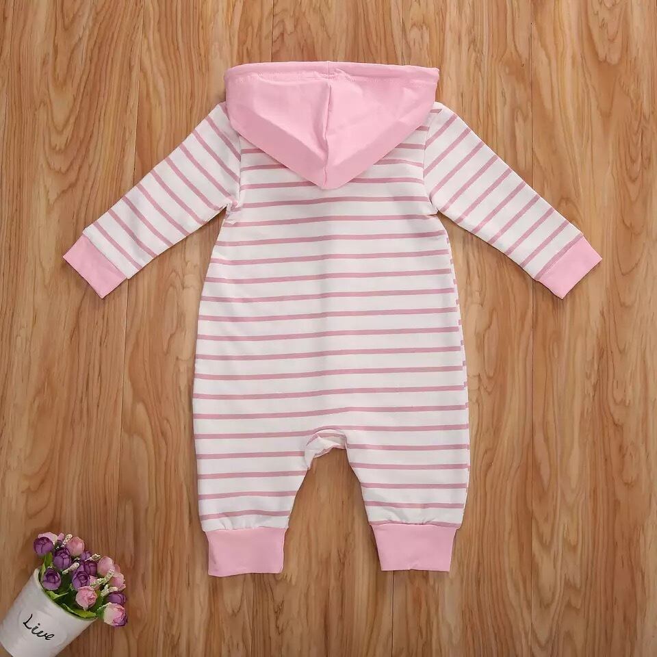 ★送料無料★ 2カラー ピンク 男の子 女の子 ボーダー フード付き ロンパース ボタン 子供 キッズ ベビー 赤ちゃん 春 夏
