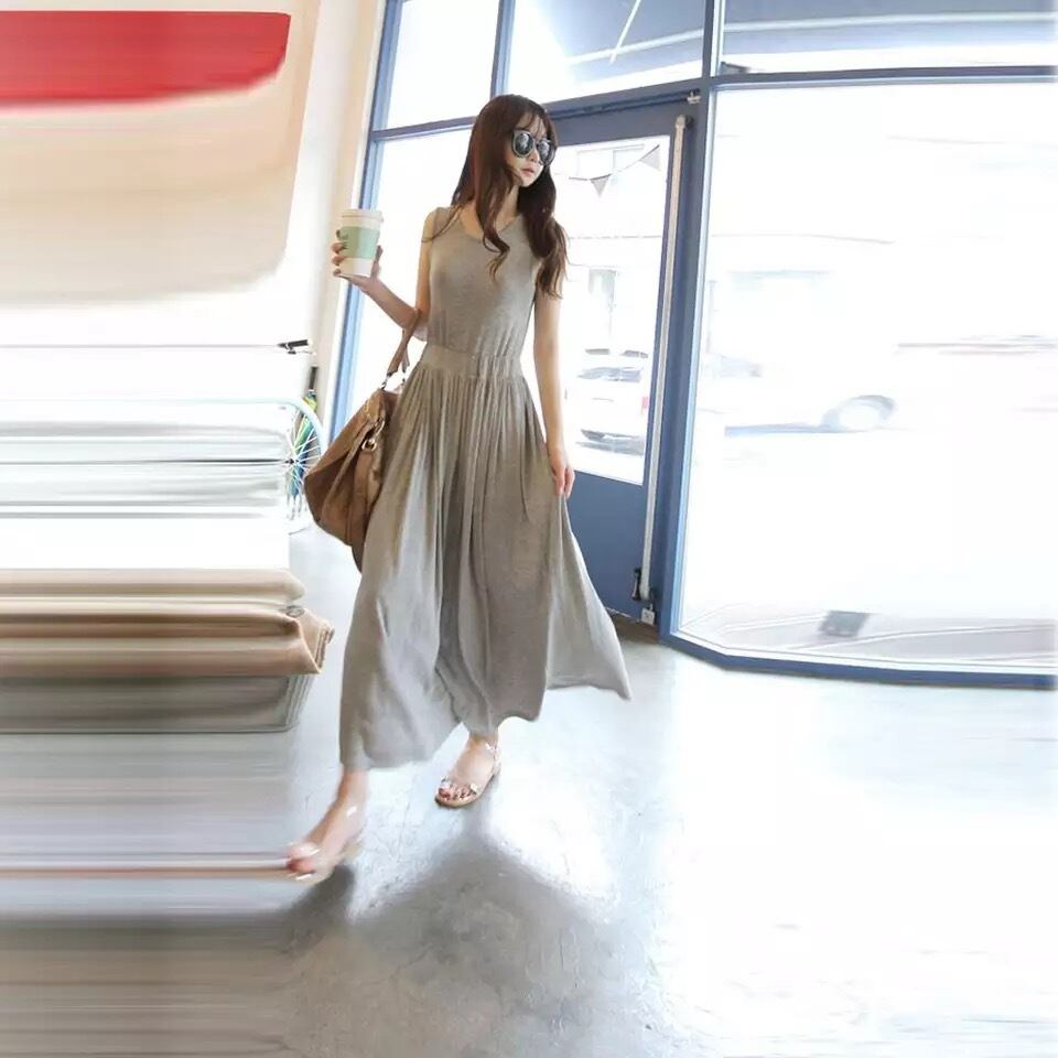★送料無料★ 3カラー グレー 灰色 レディース ノースリーブ ワンピース 楽ちん キャミソール プリーチ おしゃれ 春 夏