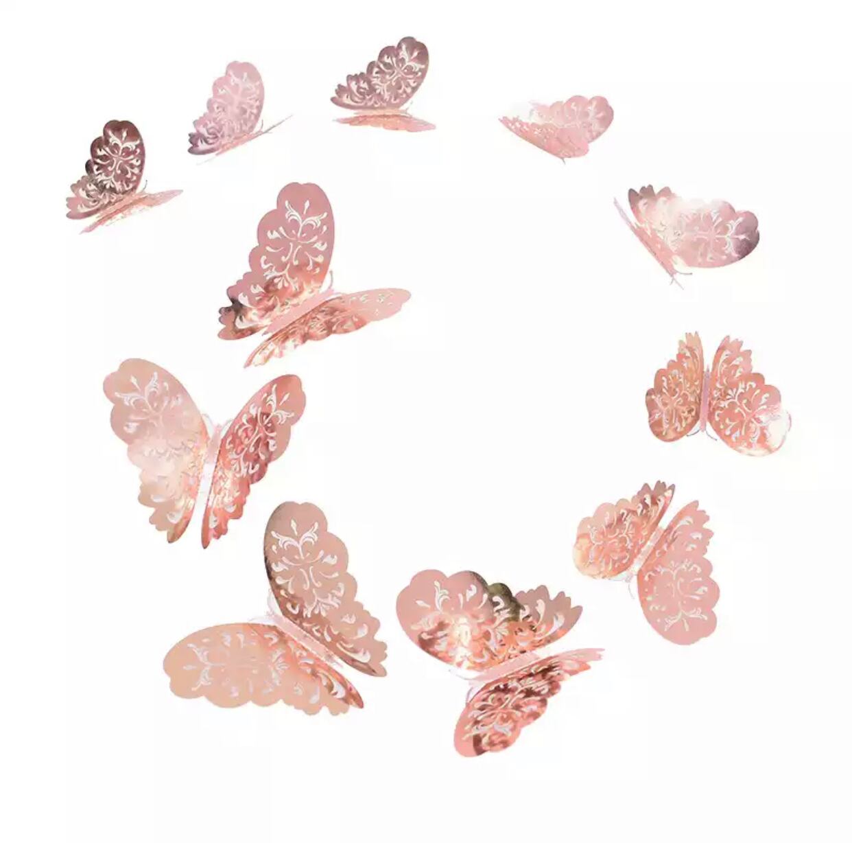 ★送料無料★ 蝶々 3D ウォールステッカー デコレーション 子供部屋 女の子部屋 男の子部屋 バタフライ キッズ ベビー 赤ちゃん 部屋ゴールド シルバー ピンクゴールド キラキラ