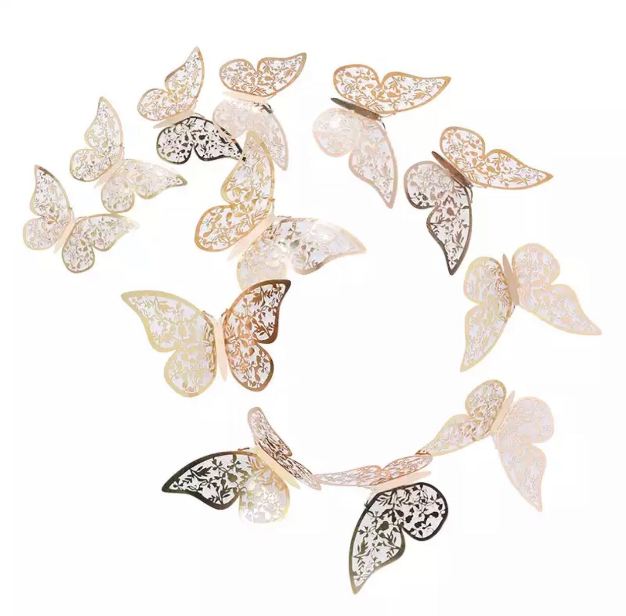 ★送料無料★ 蝶々 3D ウォールステッカー デコレーション 子供部屋 女の子部屋 男の子部屋 バタフライ キッズ ベビー 赤ちゃん 部屋ゴールド シルバー ピンクゴールド キラキラ