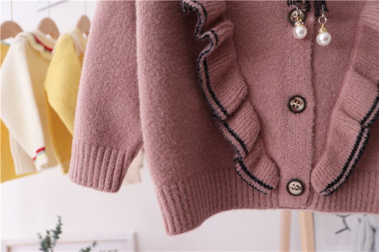 ★送料無料★ 3カラー 女の子 リボン フリル カーディガン ニット セーター 子供 キッズ ベビー 秋 冬
