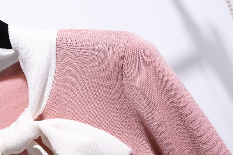 商品:レディース スカート ボウタイニット セット