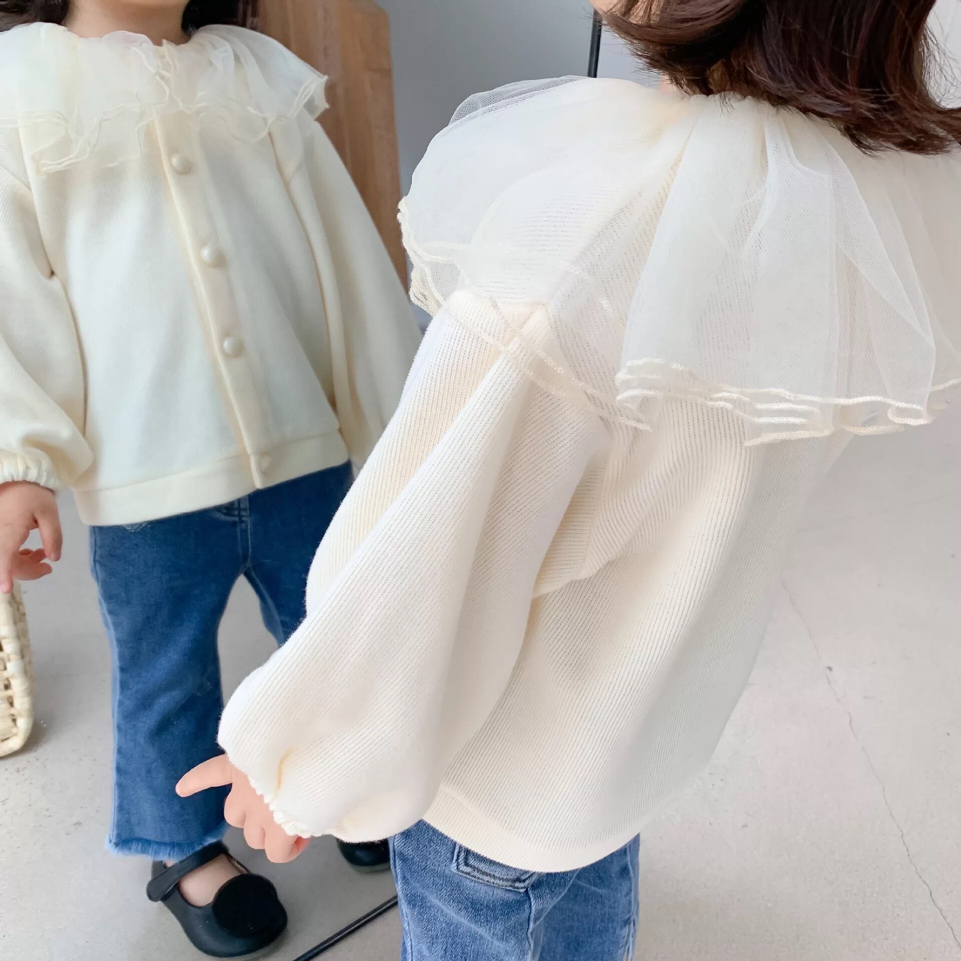 ★送料無料★ 3カラー ピンク 女の子 フリル カーディガン ニット セーター 子供 キッズ ベビー 秋 冬 韓国