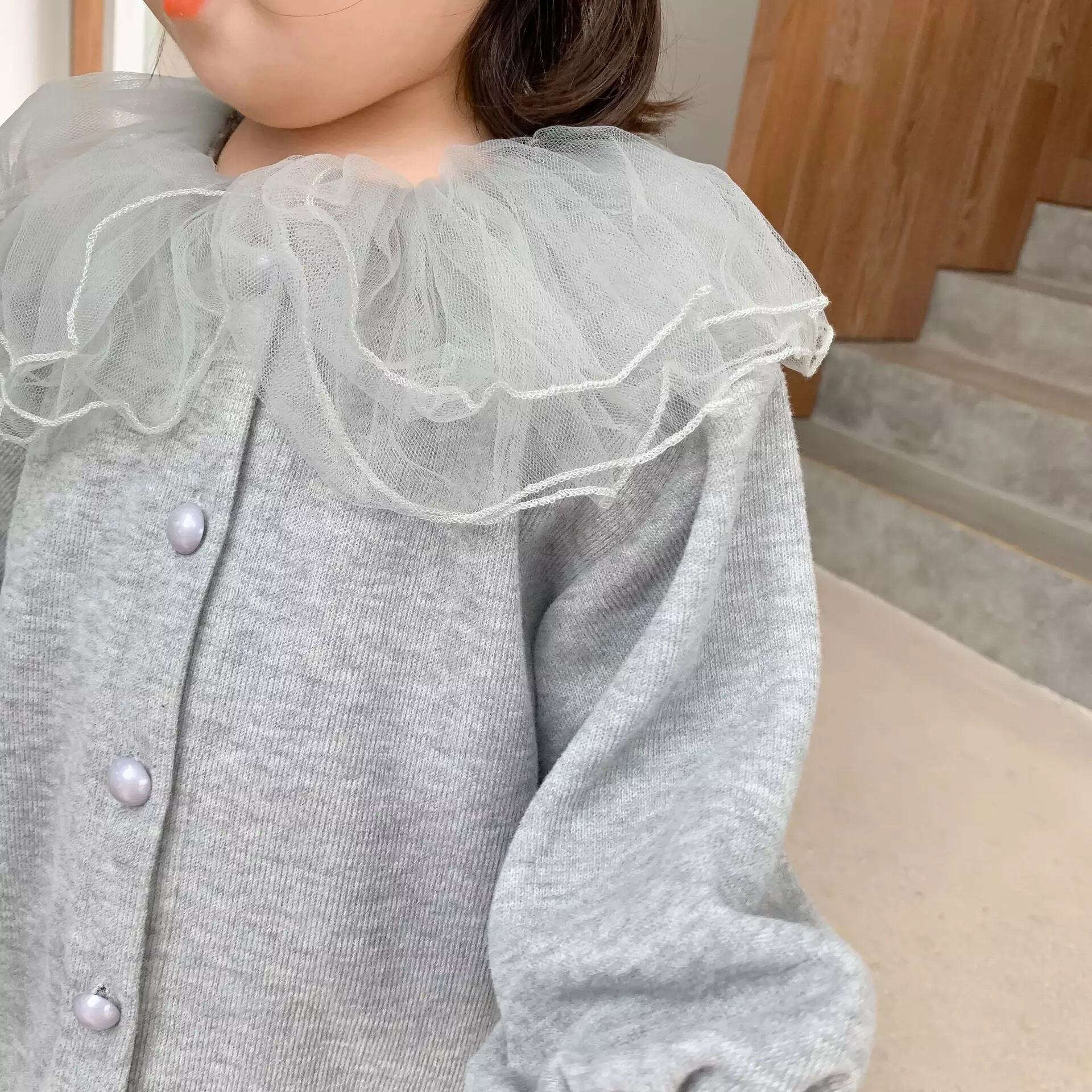 ★送料無料★ 3カラー ホワイト 白 女の子 フリル カーディガン ニット セーター 子供 キッズ ベビー 秋 冬 韓国