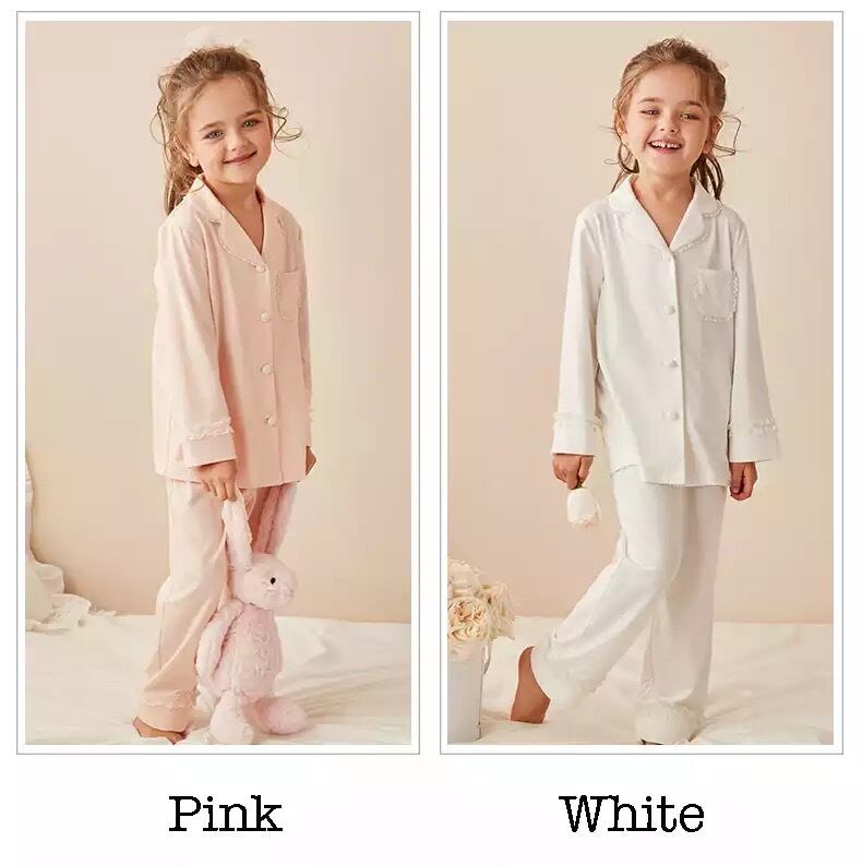 ★送料無料★ 2カラー ピンク 女の子 レース パジャマ 寝間着 ナイトウェア 子供 キッズ ベビー 優しいカラー パステル 保育園 幼稚園 秋 冬