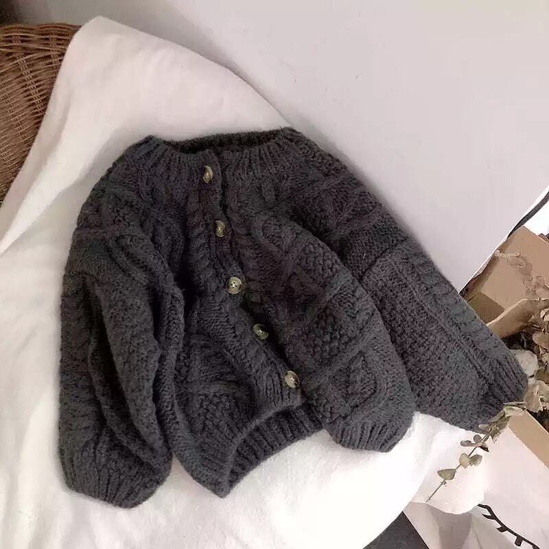 ★送料無料★ 2カラー ダークグレー 女の子 長袖 カーディガン セーター 子供 キッズ ベビー ジュニア 秋 冬 韓国