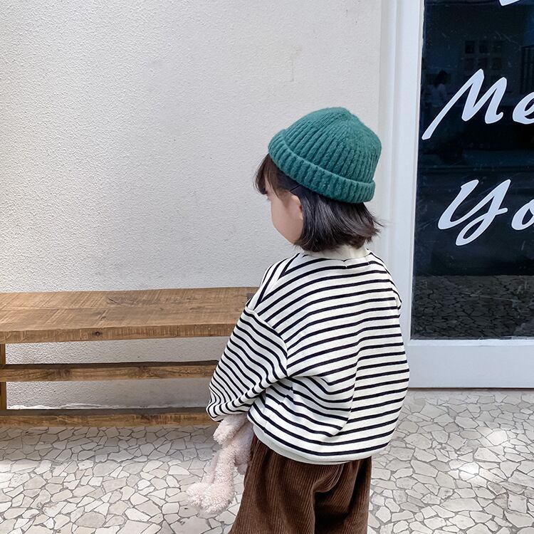 ★送料無料★ 3カラー ブラック 黒 女の子 長袖 ボーダー Tシャツ カットソー ロンT 子供 キッズ ベビー ジュニア 秋 冬 韓国