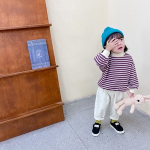 ★送料無料★ 3カラー パープル 紫 女の子 長袖 ボーダー Tシャツ カットソー ロンT 子供 キッズ ベビー ジュニア 秋 冬 韓国