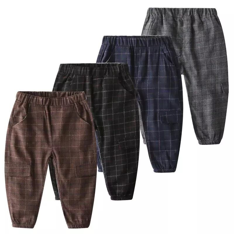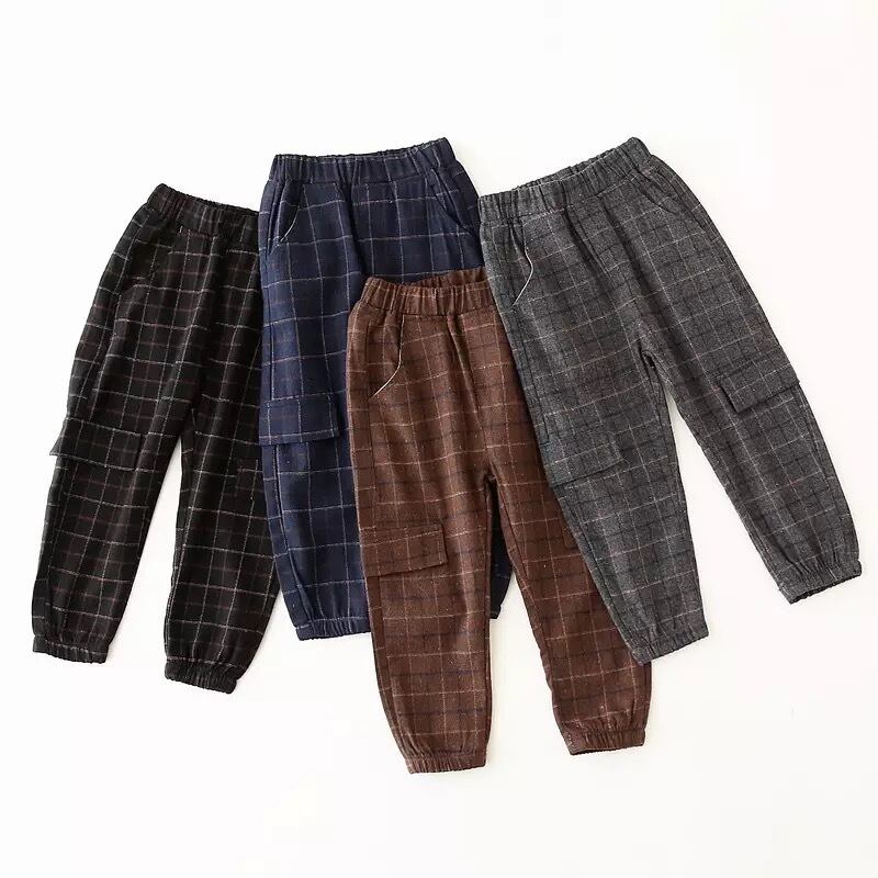 ★送料無料★ 4カラー ブラック 黒 男の子 女の子 クラシック チェック カーゴパンツ ズボン 子供 キッズ ベビー ジュニア 秋 冬 韓国