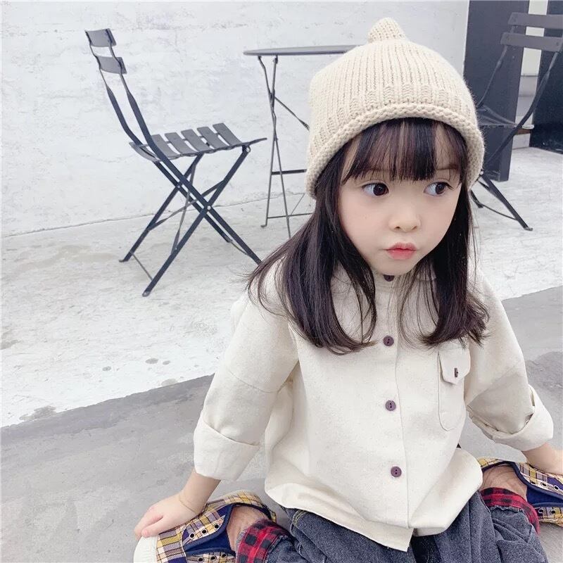 ★送料無料★ 2カラー ライトブラウン 男の子 女の子 長袖 シャツ ブラウス バックデザイン 襟付き 子供 キッズ ベビー ジュニア 秋 冬 韓国 アースカラー