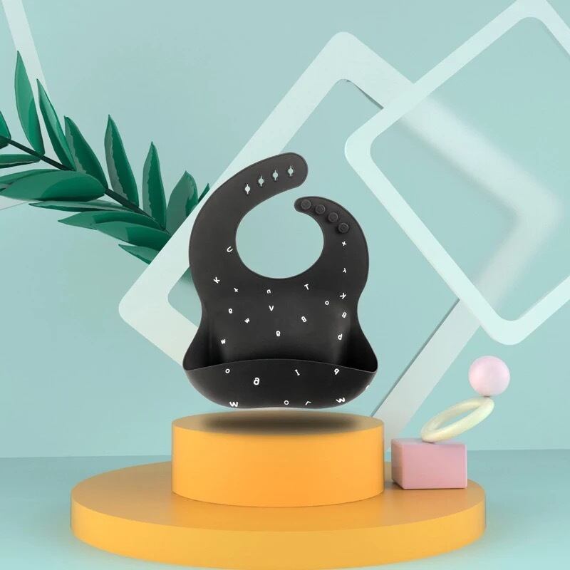 ★送料無料★ ブラック 黒 アルファベット 英語 女の子 男の子 お食事スタイ お食事エプロン シリコンビブ よだれかけ 子供 キッズ ベビー シリコン 防水