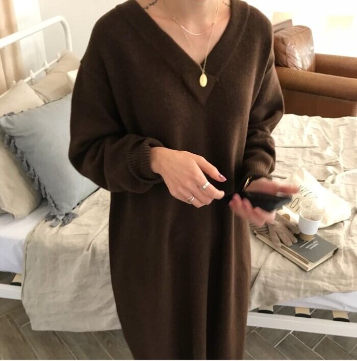 ★送料無料★ 2カラー レディース ワンピース ニット 長袖 秋 冬