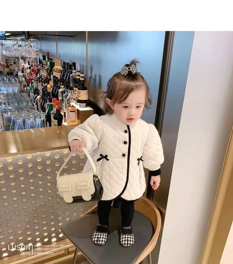 ★送料無料★ 2カラー ホワイト 白 女の子 キルティング コート キラキラ ビジュー ボタン リボン モノトーン 子供 キッズ ベビー ジュニア 秋 冬 韓国