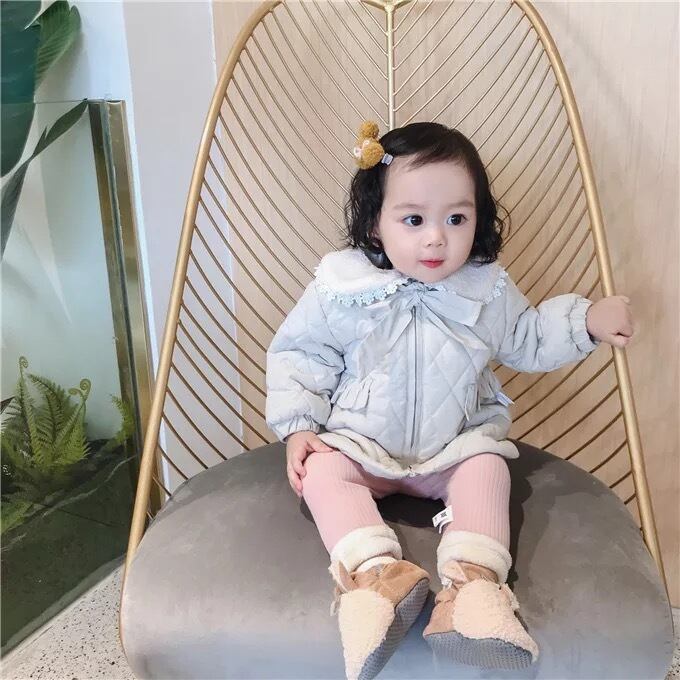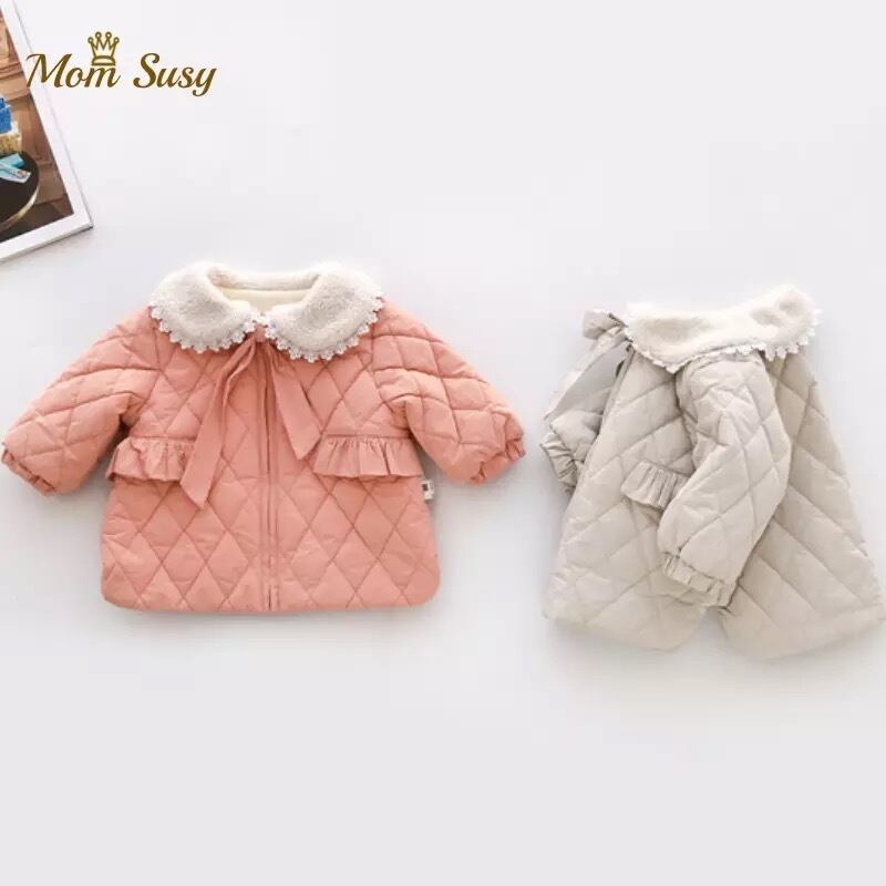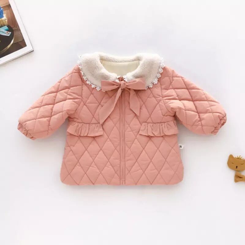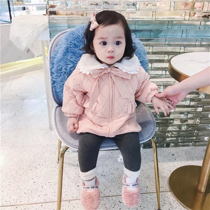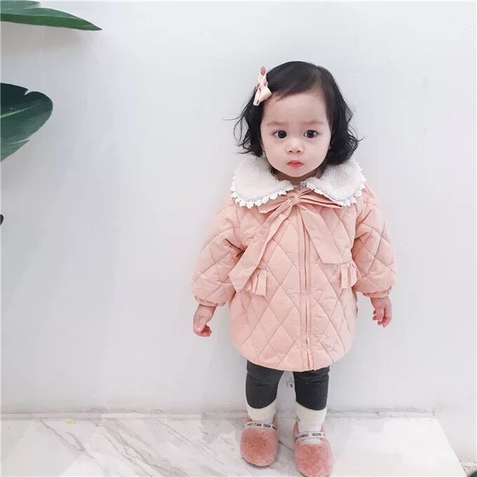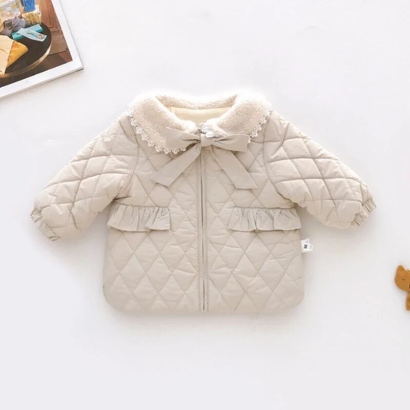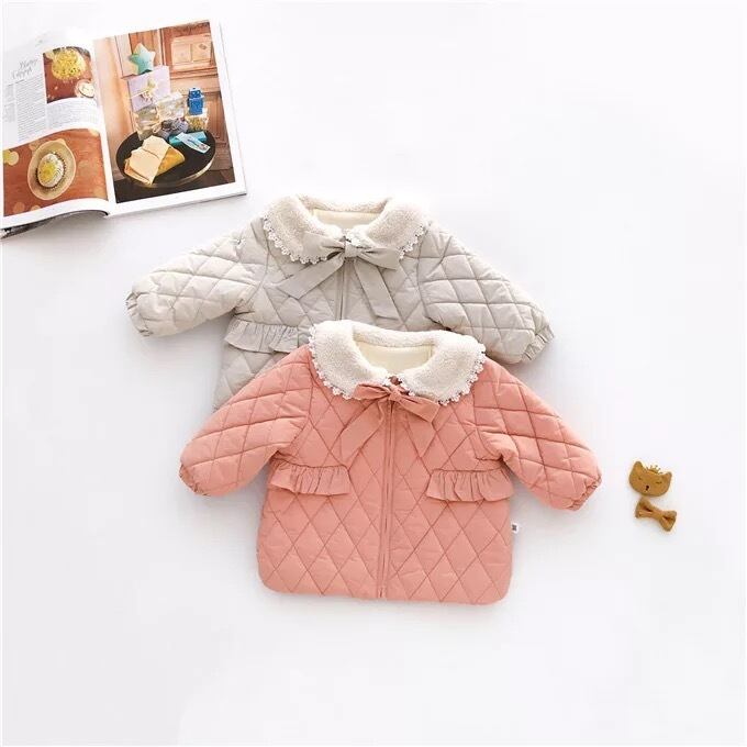 ★送料無料★ 2カラー グレー 女の子 キルティング コート 襟付き レース リボン 子供 キッズ ベビー ジュニア 秋 冬 韓国
